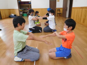 また、「アルプス一万尺」をみんなで行い、歌や手拍子に合わせて元気いっぱい体を動かしました。